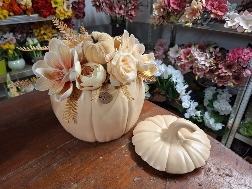 Barack nagy méretű kerámia tök magnóliával